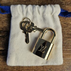 Includes strap, dustbags, lock, and keys