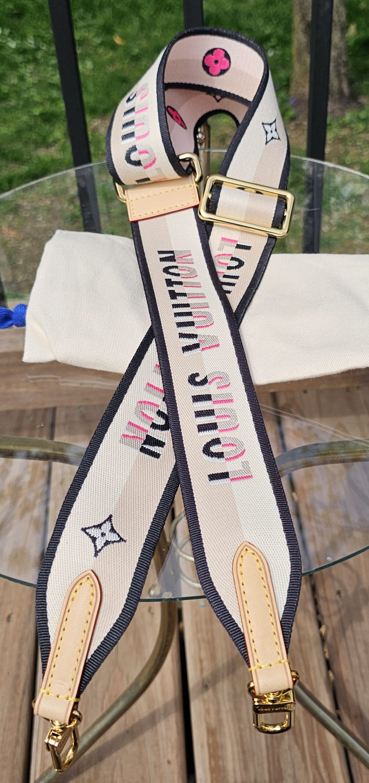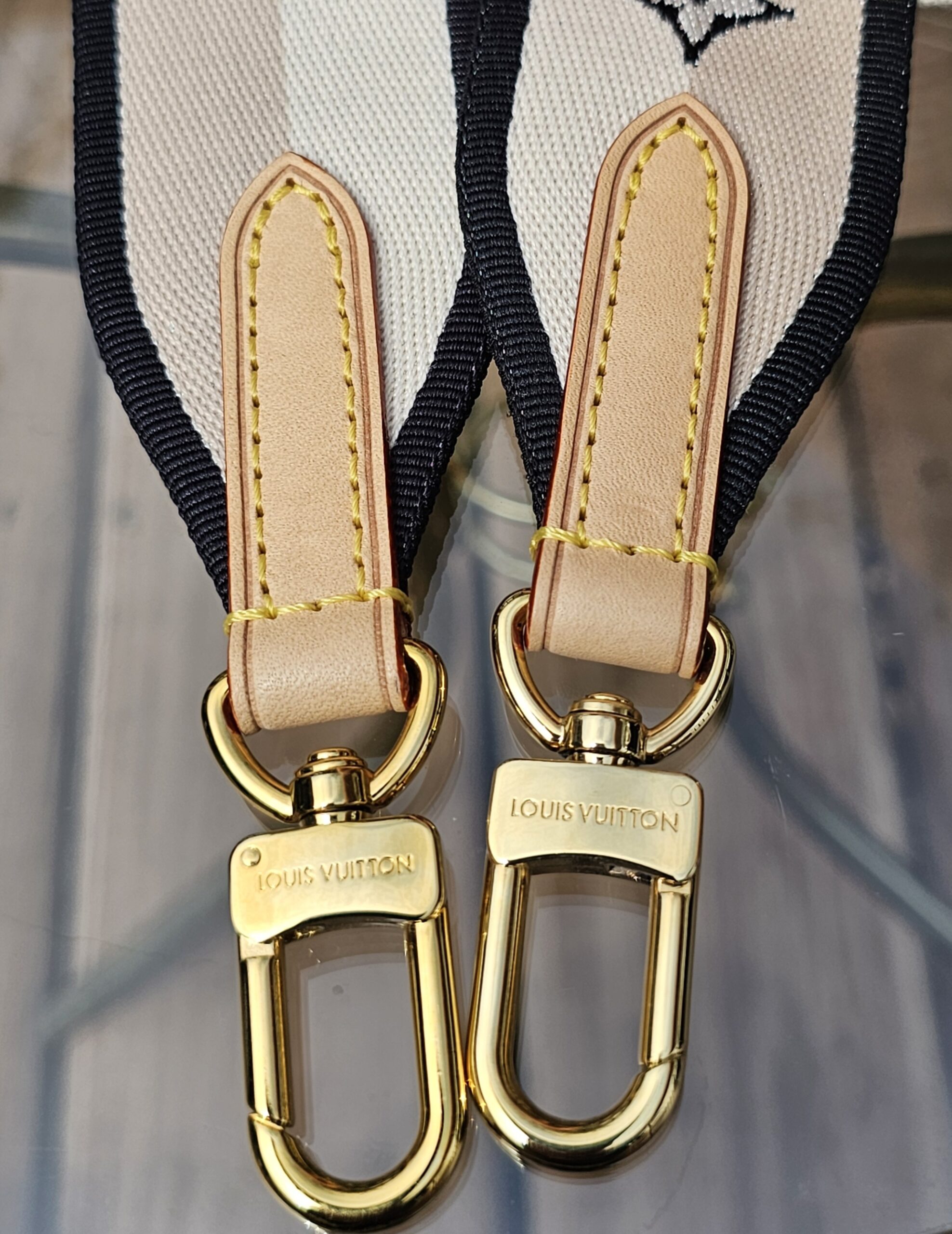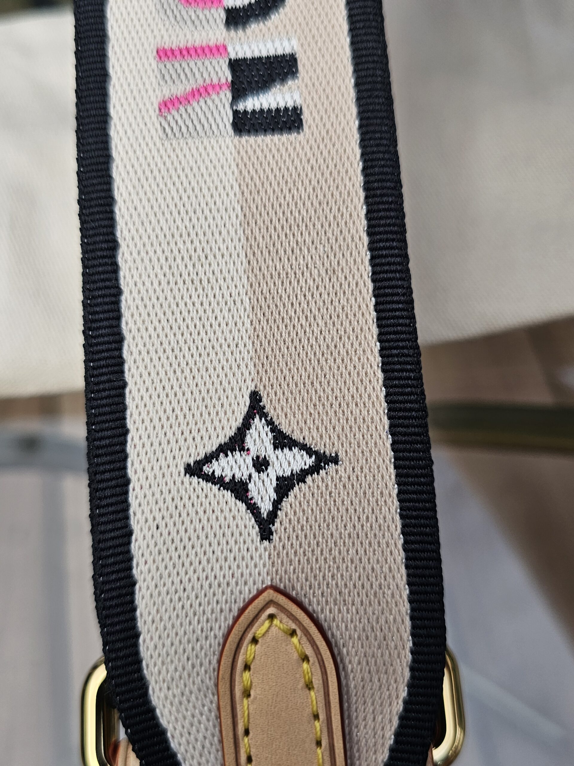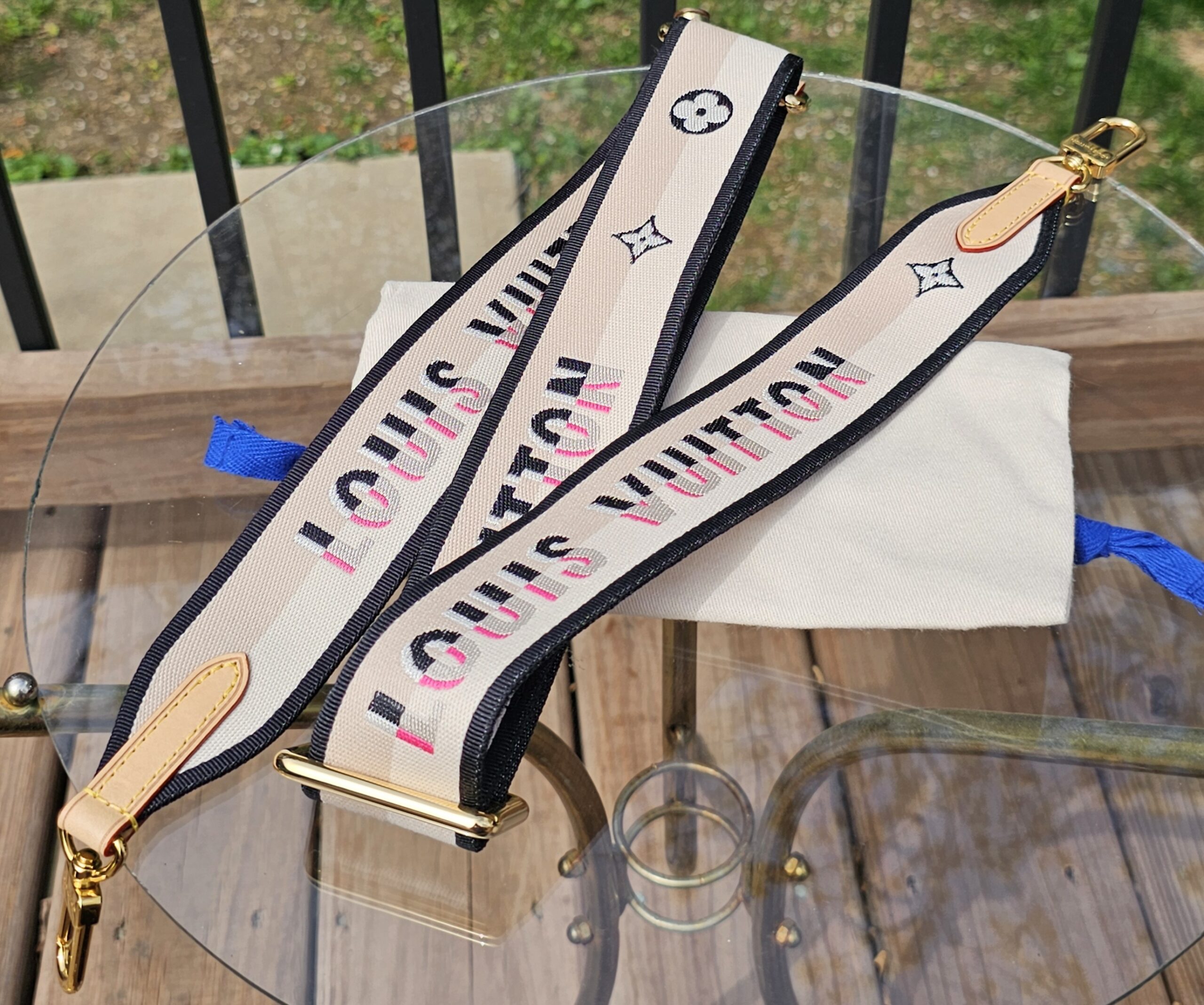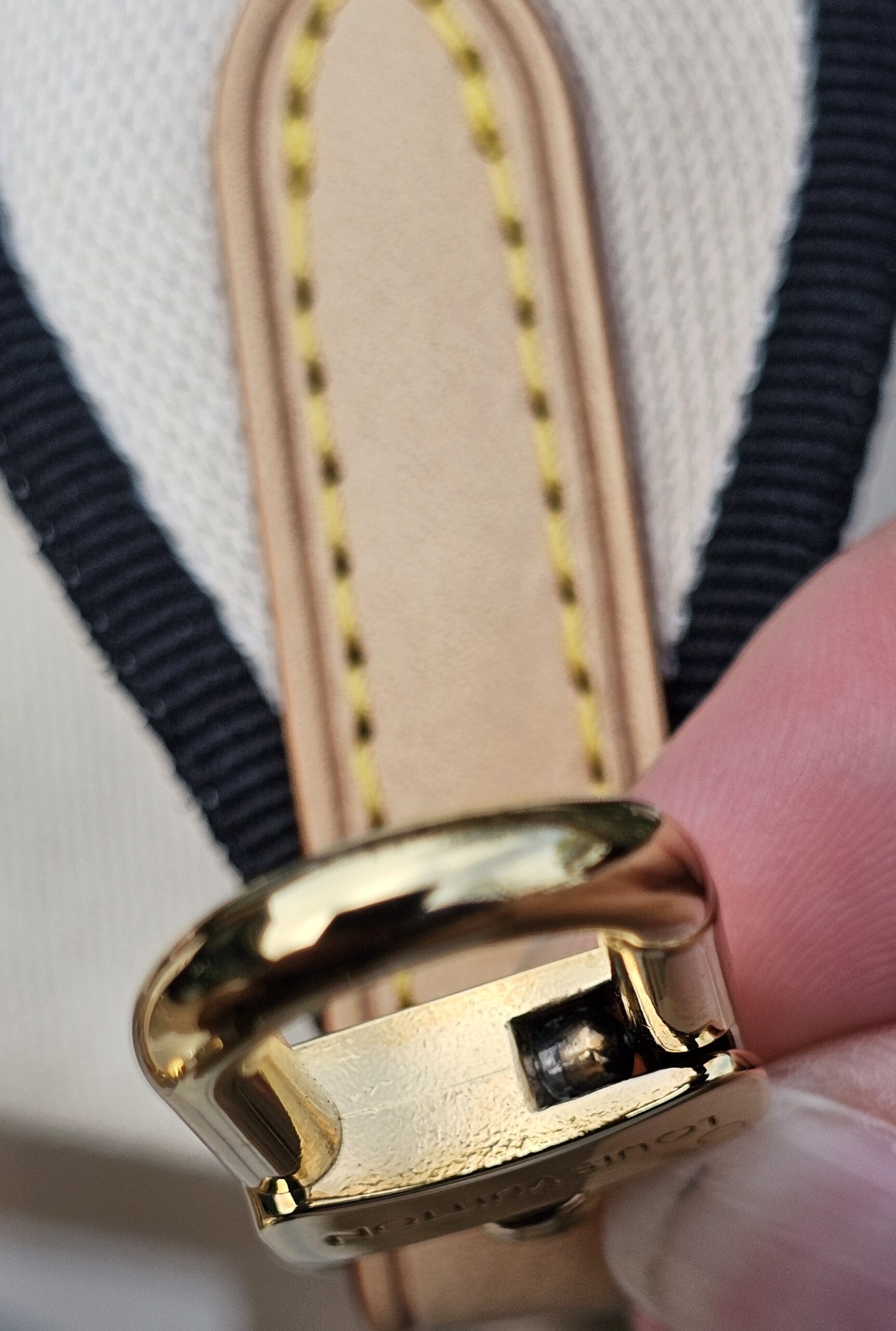 Gold hardware shows minor surface scratches