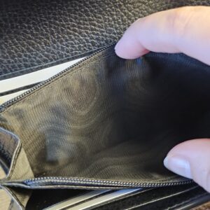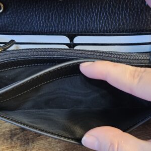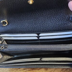 Inside: 12 card slots and 2 bill compartments, 2 separate interior compartments and zip coin pocket