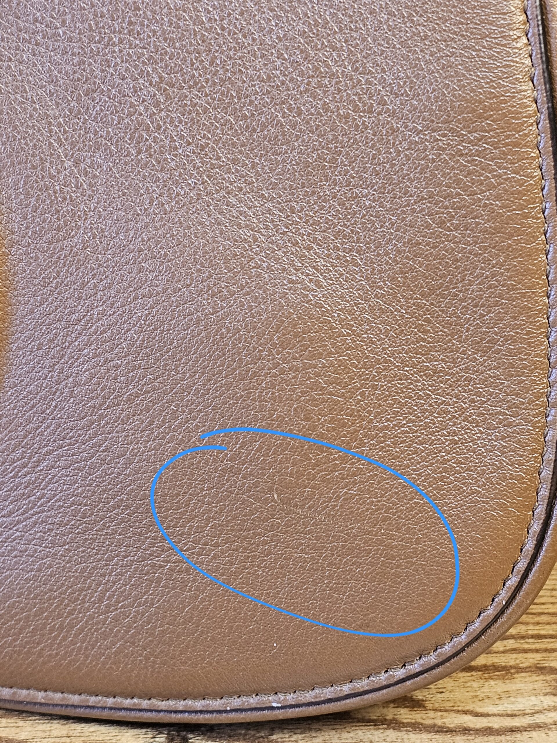 ❤️Calfskin leather is soft and supple. One surface scratch (circled) minimal