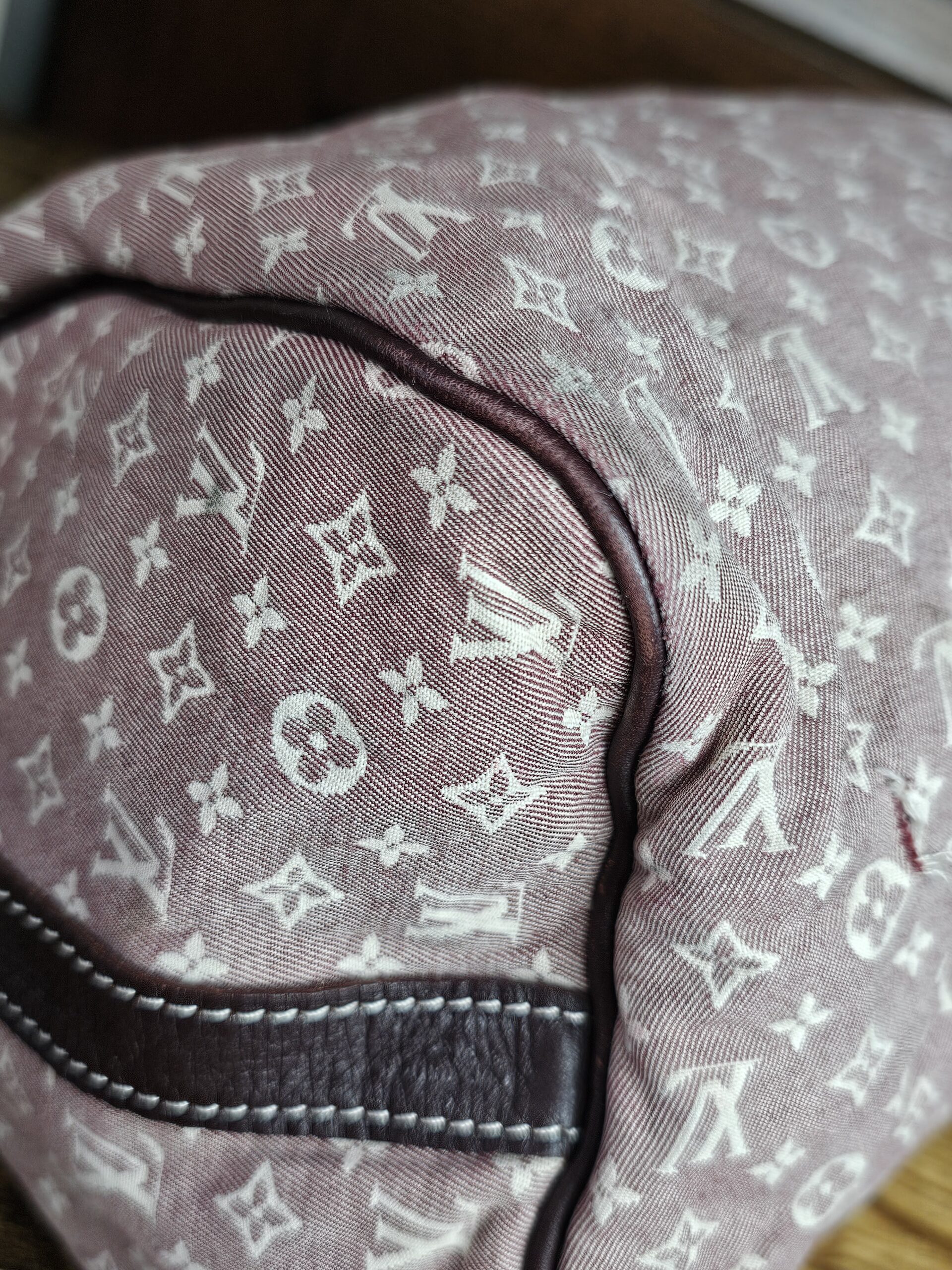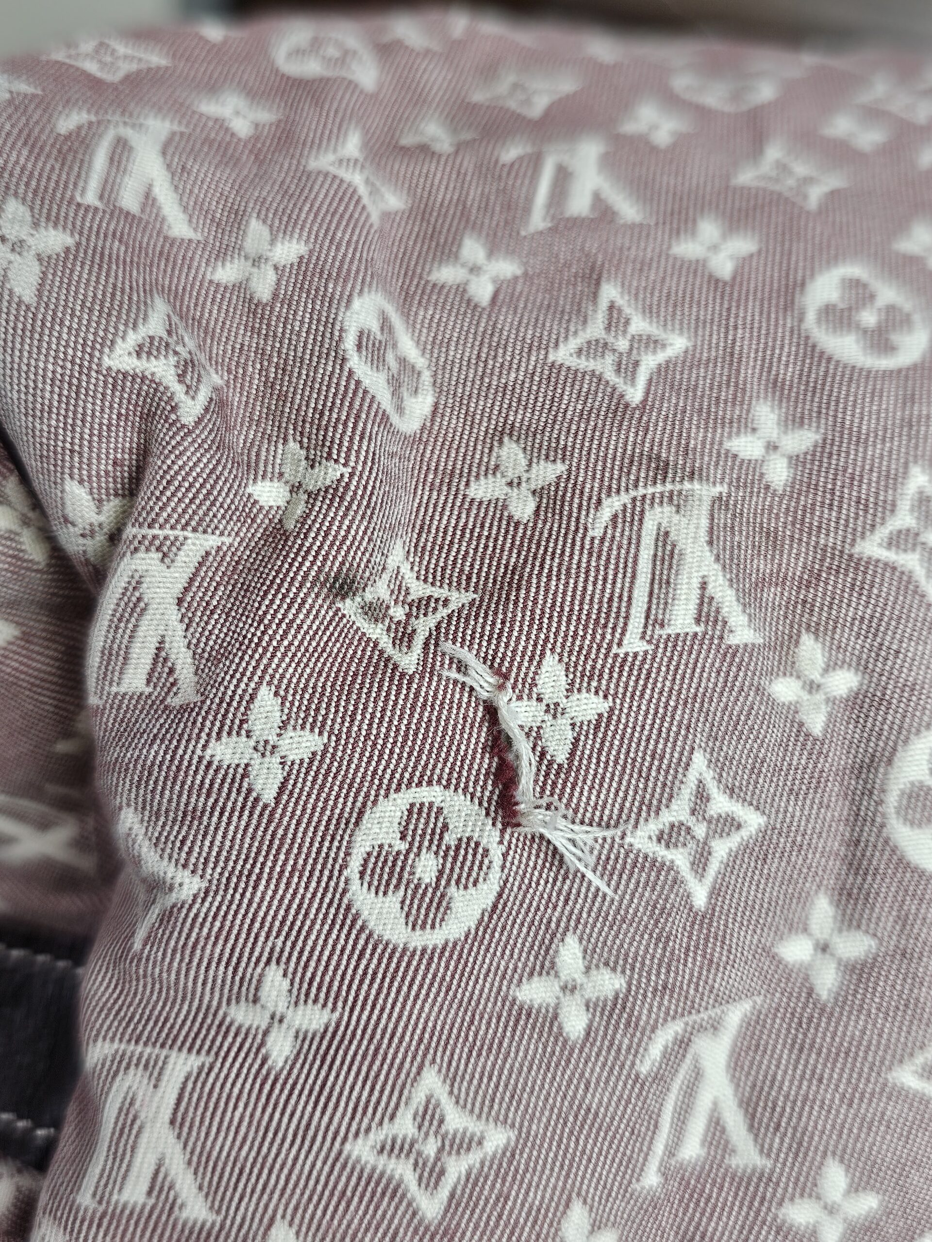 ❤️Min Lin material has staining/rubs/significant wear throughout. One small fray on bottom