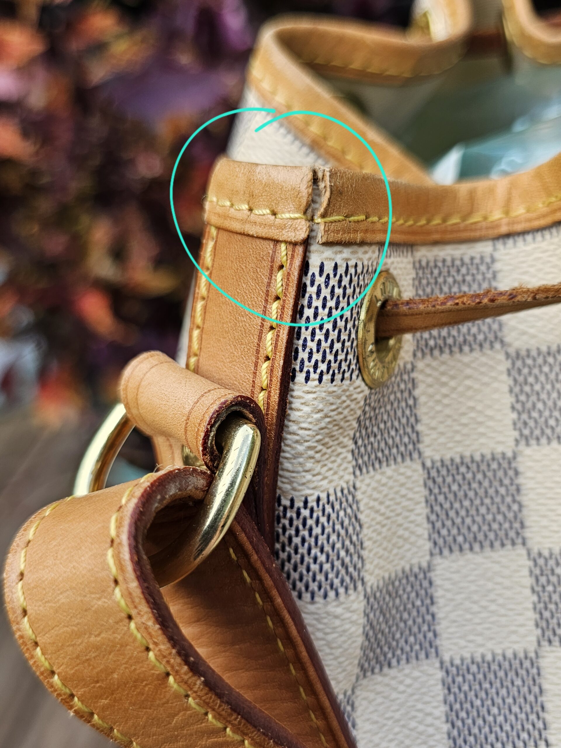 💙Vachetta is an overall pretty honey patina. Shows some normal use rubs/darkening/watermarks. One crack in trim (circled). Not dry with lots of life left